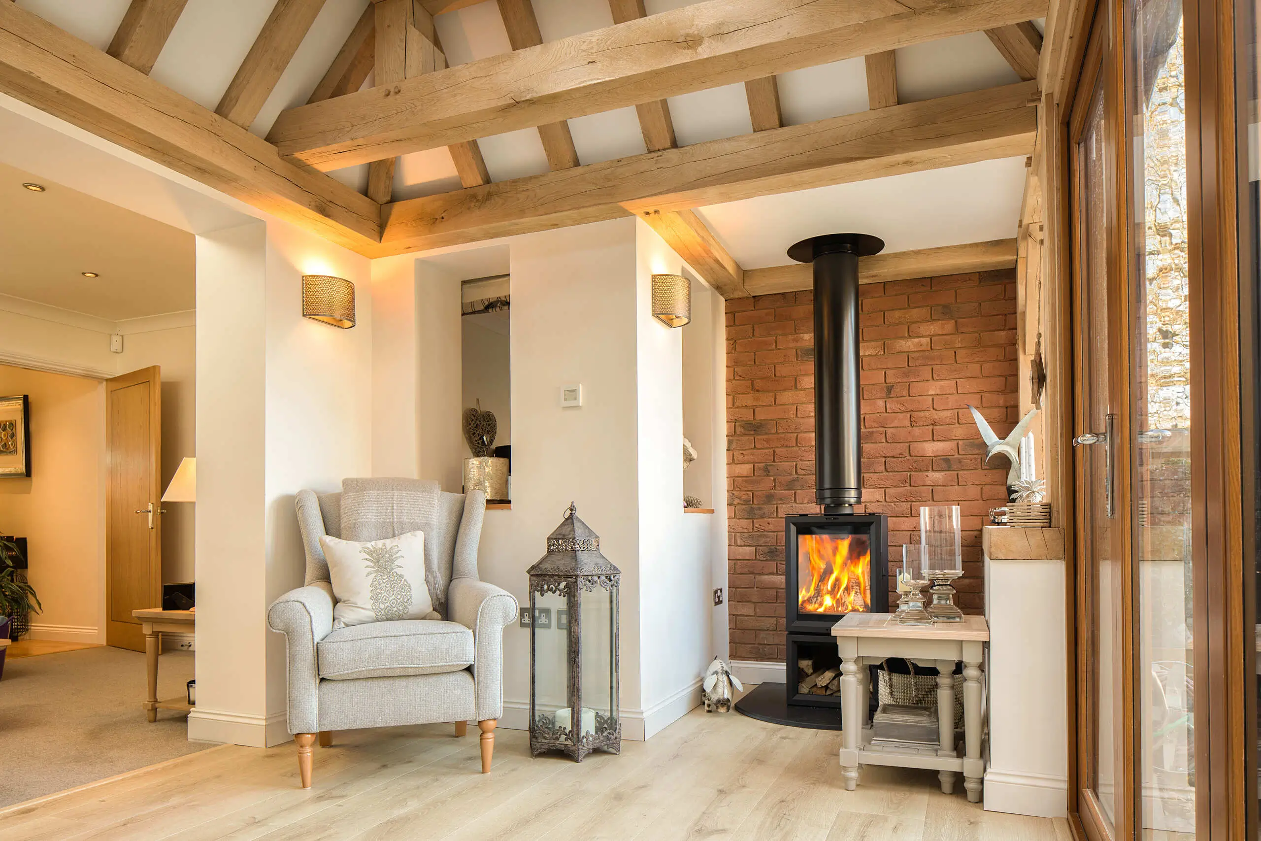 The addition of a high-performance roof lantern further increased natural light, contributing to the warm and inviting atmosphere of the sitting room.