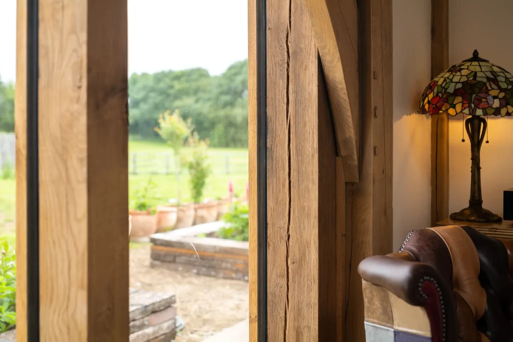 This interaction between light and material is central to green oak architecture. Rather than masking natural variation, our designs celebrate it. Exposed beams are positioned to catch the light, ensuring the structure itself becomes a living feature of the home. The result is a building that feels rich, tactile, and deeply connected to its environment